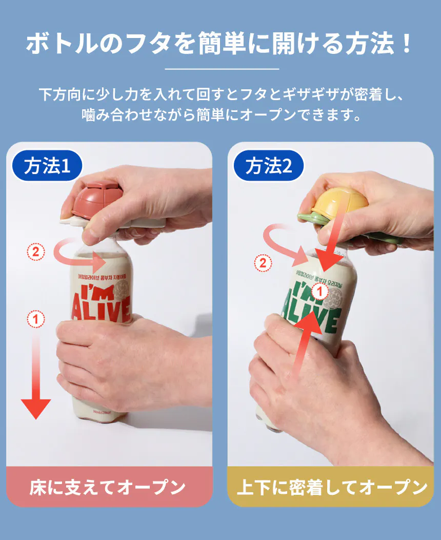 一部のペットボトルのふたは、そのまま挟んで回すとふたがかみ合わず空回りすることがありますので、下記の方法をご参考ください。