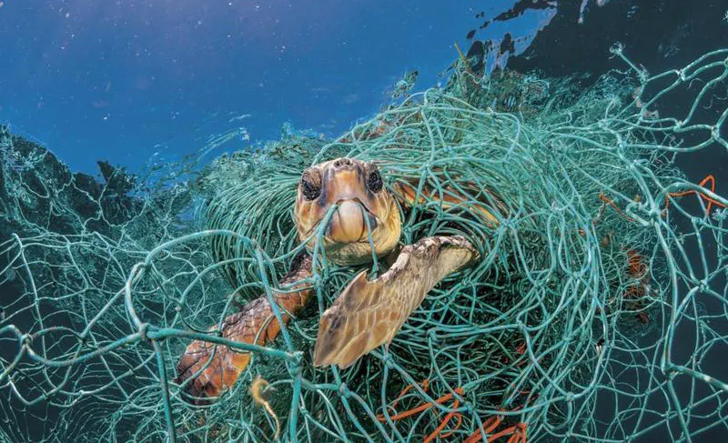 一年の廃漁網でカメ、クジラなどの海洋動物が10万匹ずつ死んでいます。