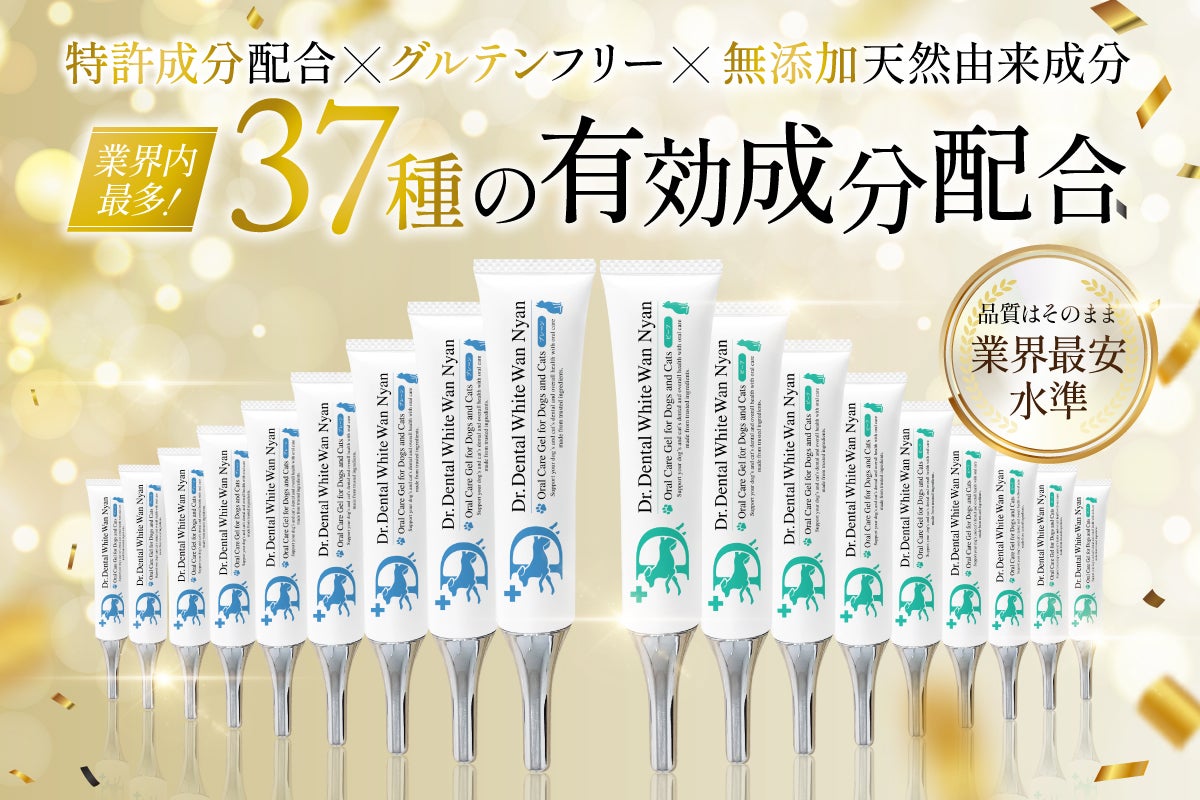 「ドクターデンタルホワイトワンニャン」は、歯垢・歯石の除去、口臭予防、歯の白さキープまで、1本で多機能ケアが叶う画期的なデンタルジェルです。