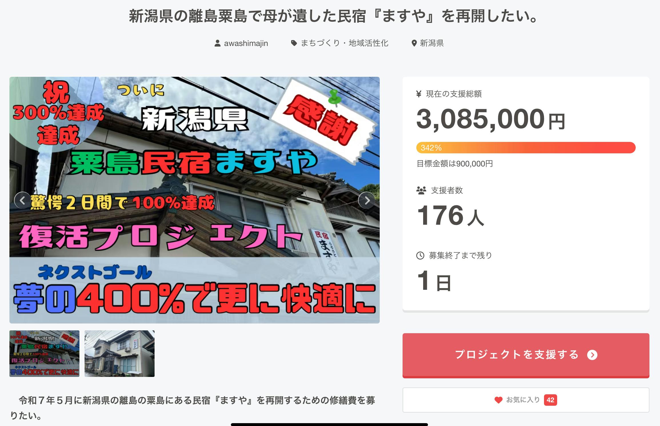 ついにクラファン残り1日となりました。ここまで頑張れてこれたのは皆様の応援が
