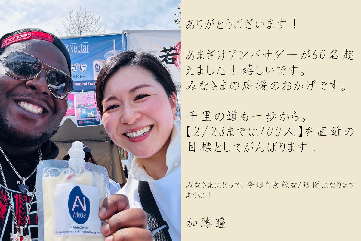 嬉しいことに、あまざけアンバサダーが60名を超えました!多くの方に応援のコメントをいただき、あらためてみなさまの優しさに触れ、心温まる時間を過ごしていました。