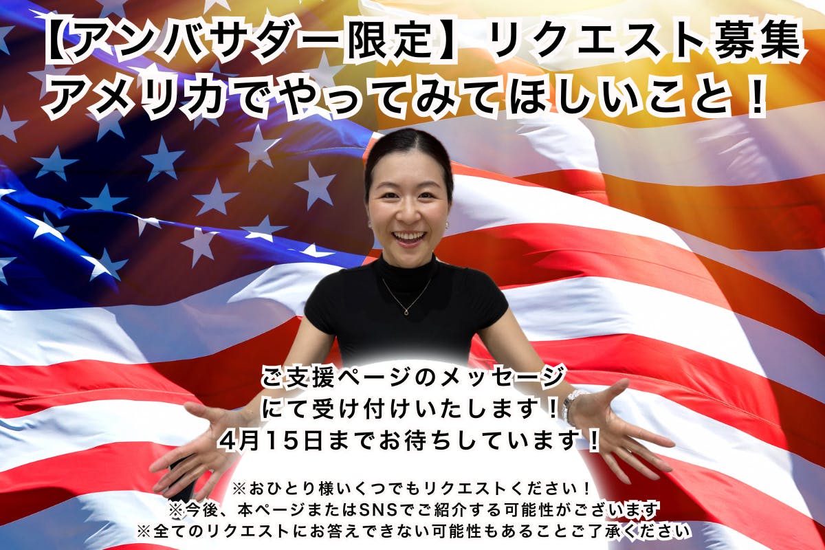 あまざけアンバサダーのみなさんと一緒にアメリカ挑戦がしたい!という思いから、急遽企画いたしました!あまざけアンバサダー限定で、リクエストを募集いたします。