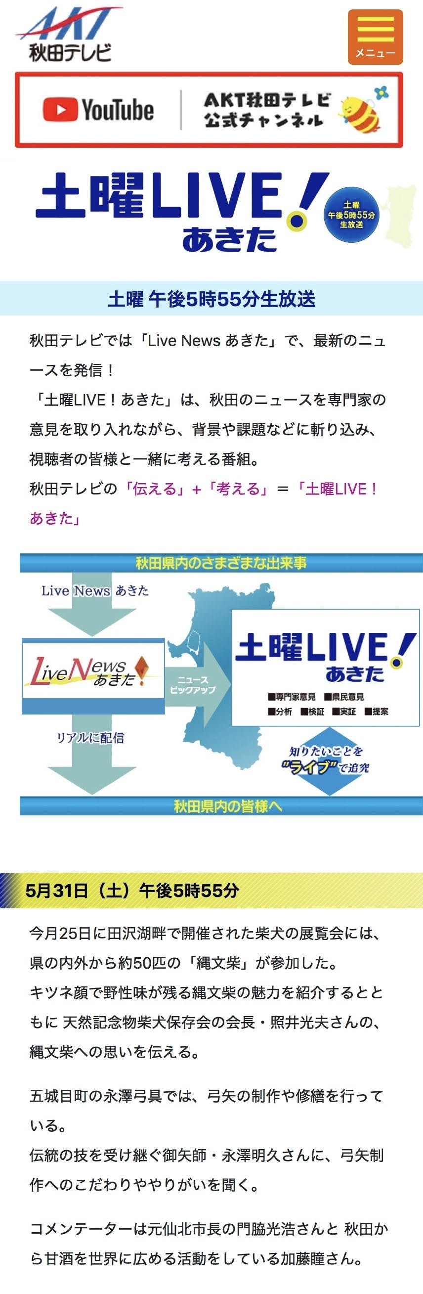 今夜、17:55より秋田テレビ「土曜ライブあきた」にコメンテーターとして出演をしてまいります。アメリカで挑戦している動画も流していただく予定です。