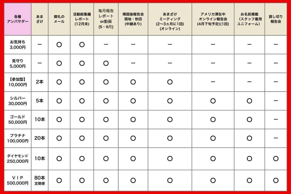 ※秋田からボストンまでの渡航費と1ヵ月間の宿泊費、生活費には充てません。