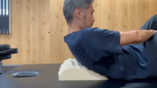 丸くなった背中にやわぐりクッションを当てて寝ることで、筋肉を心地よく刺激します。