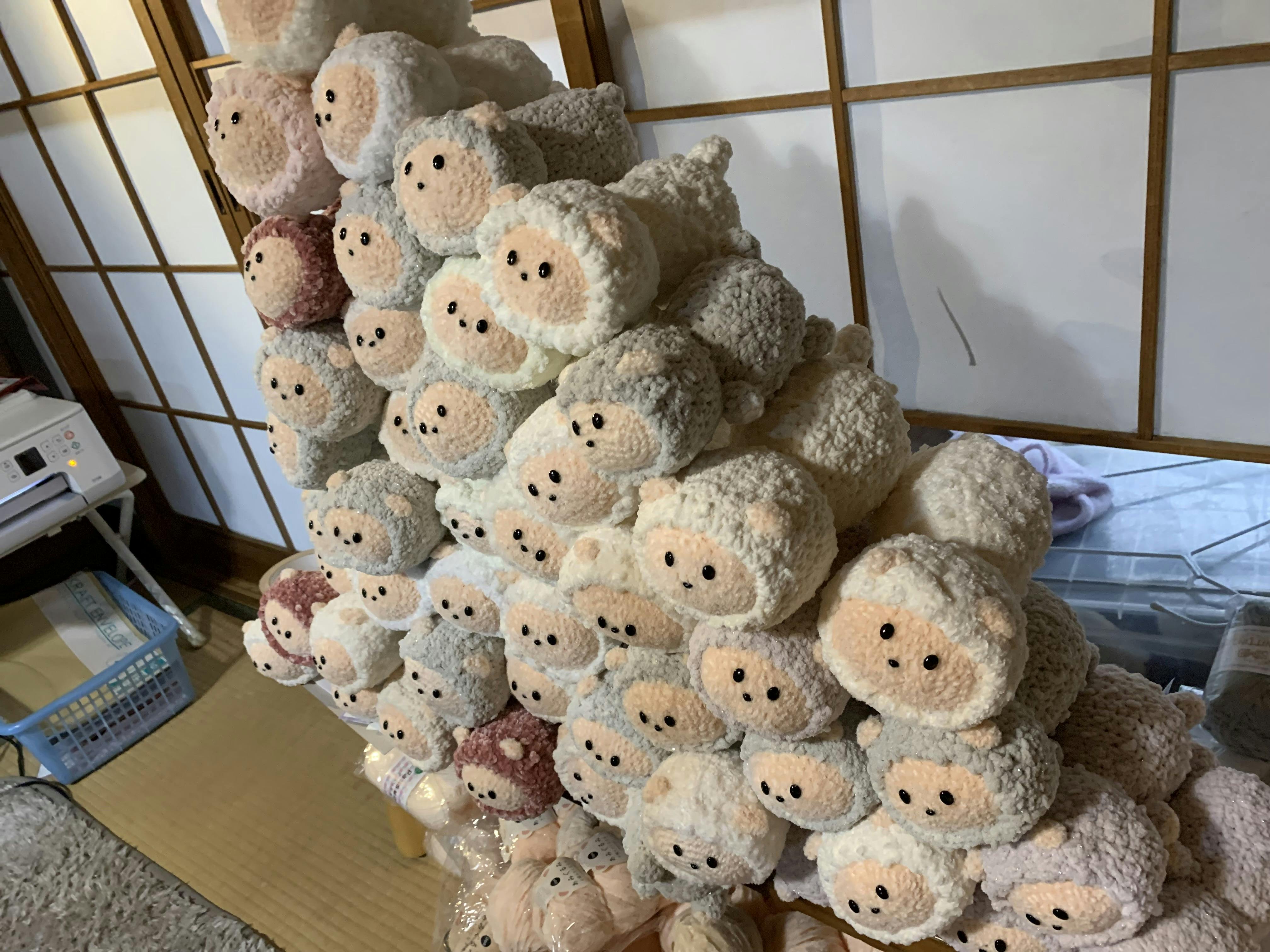 一、二月のプロジェクトのだんだんと羊さんが積み重なってきました。 今回は少しカラフルになりそうです。 一つ一つの羊さんが皆様の思いを運びます。 たかお編みぐるみ工房 原田隆夫