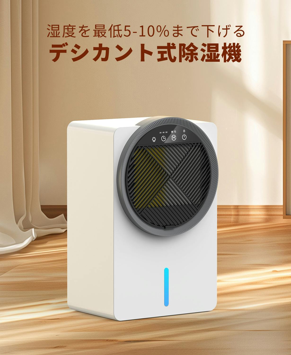 デシカント式除湿機は、内部の除湿ローターで湿気を含んだ空気を吸い込み、特別な「シリカゲル分子ふるい」を使用して水分子を吸着し、乾燥した空気を排出します。ヒーターによって水分子を水蒸気に変え、水タンクに収集するため、冷媒が不要でエコかつメンテナンスも簡単、製品寿命が非常に長いです。また、コンプレッサーがないため低騒音、快適な睡眠環境をサポートします。