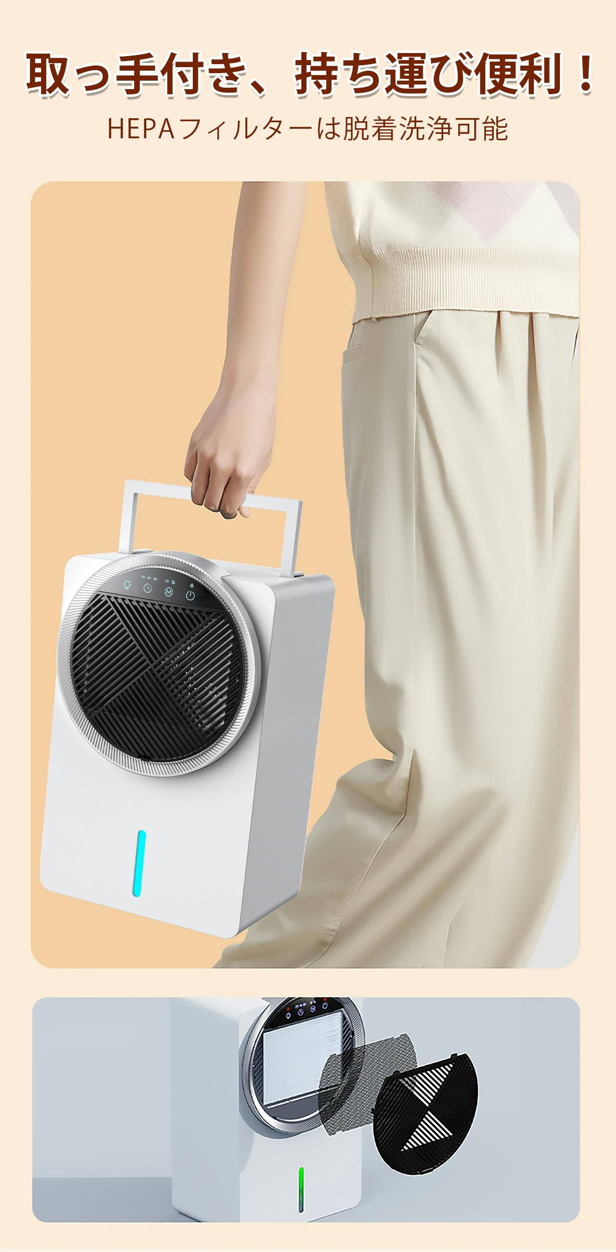 HEPAフィルターを搭載、空気清浄を行う