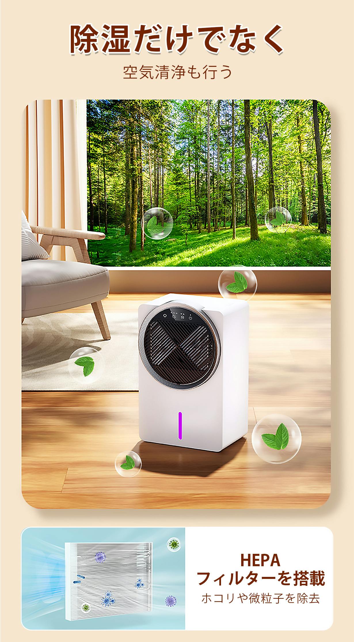 換気口にはH11級のHEPAフィルターを搭載して、空気中のホコリや微粒子を効果的に除去します。これにより、除湿だけでなく空気清浄も同時に行え、より清潔で快適な室内環境を提供します。
