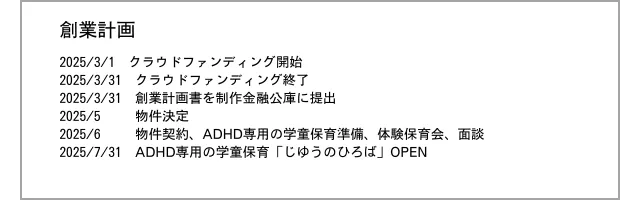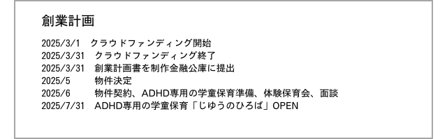 幼稚園教諭時代の経験を生かし、”ADHD専用の学童保育”を作りあげること。