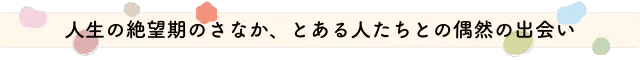 営業先でたまたま知り合った方に、これまでの人間関係や仕事の悩みについて話す機会がありました。