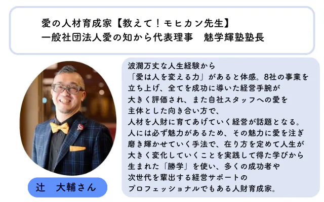 石川さんは会わせたい人がいると言って、一般社団法人愛の知から 代表理事「モヒカン先生」こと辻大輔さんという「教育」に強い「人材育成家」に私は出会うことになります。