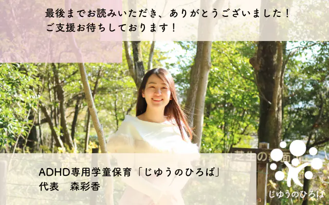 今回のプロジェクトが実現したら、ADHDの子どもたちが心から楽しめて、保護者の方々が心から笑える場所になったらいいなと考えています。