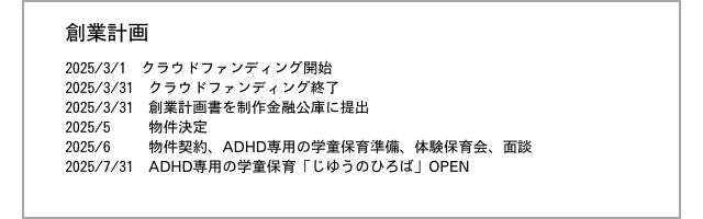 幼稚園教諭時代の経験を生かし、”ADHD専用の学童保育”を作りあげること。
