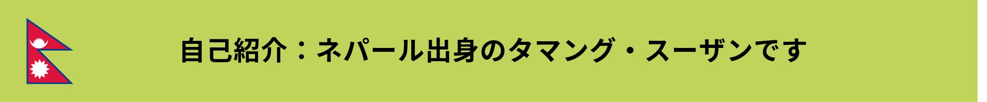ネパール出身のタマング・スーザンです。私は2014年に日本へ留学し、日本語学校と大学を卒業しました。来日した時の夢は、日本でお金を稼いで豊かな生活をすることでした。
