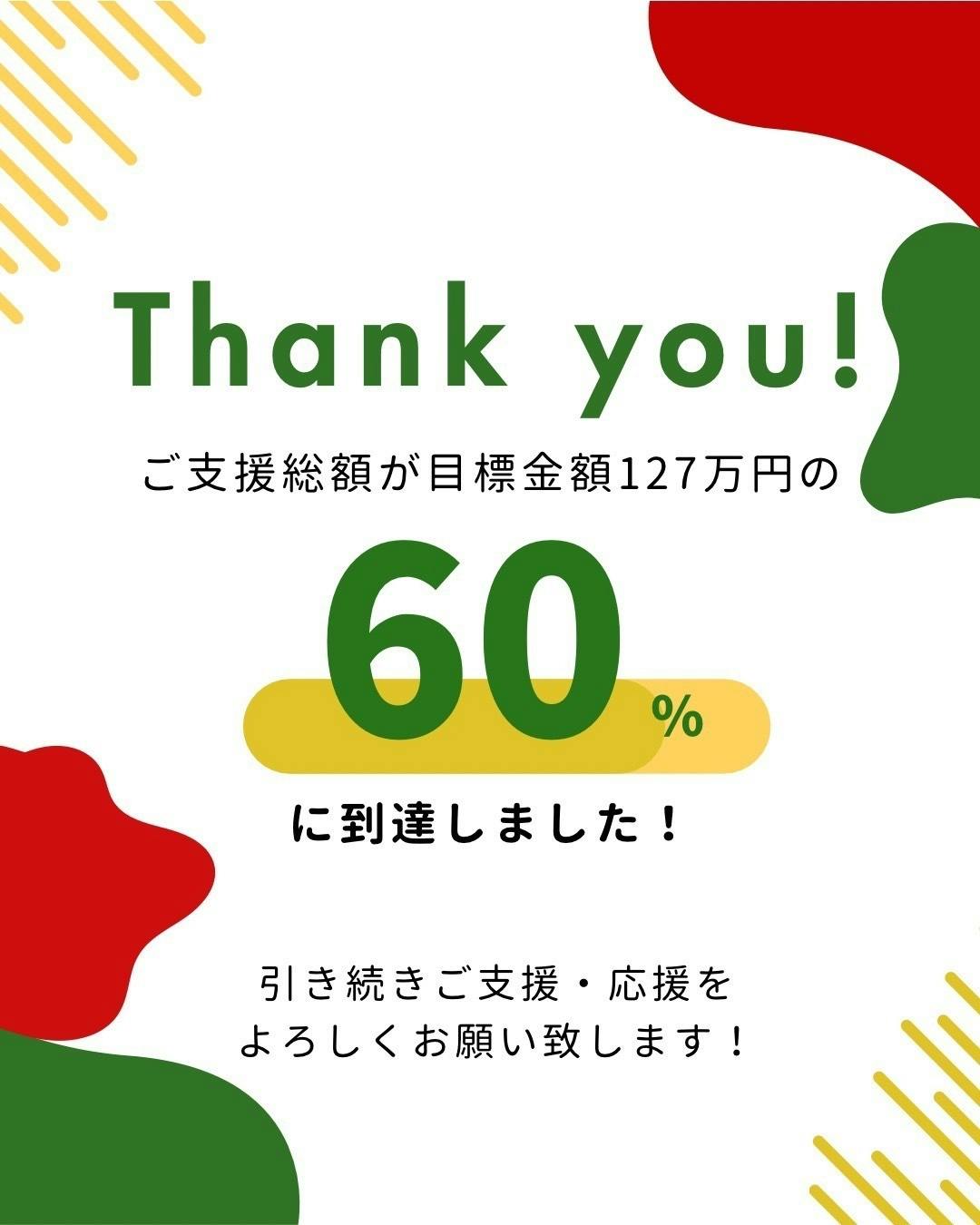 皆さまのおかげで、60%達成。心からの感謝