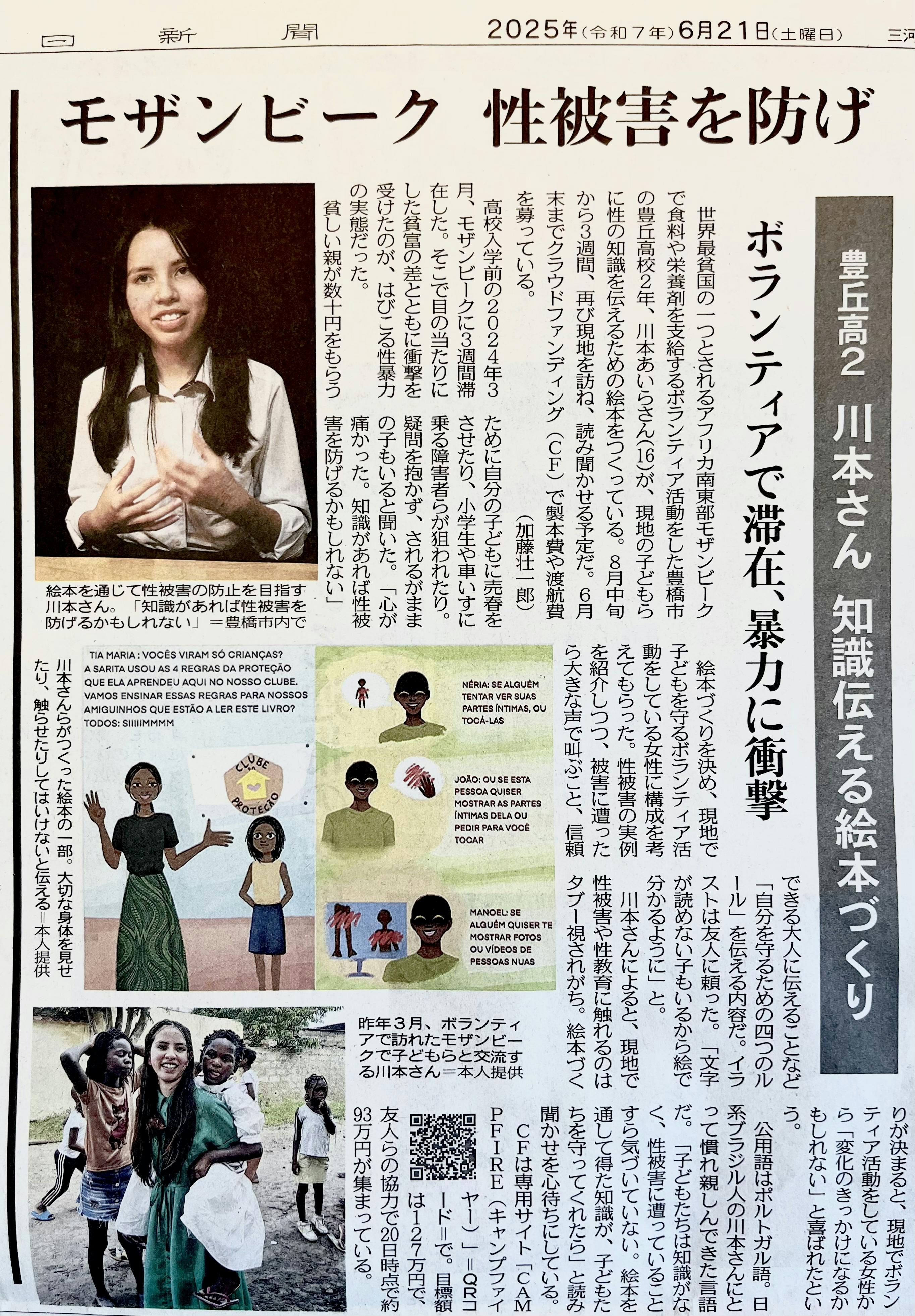 モザンビークでの性被害防止の活動が、6月21日付の中日新聞に掲載されました!