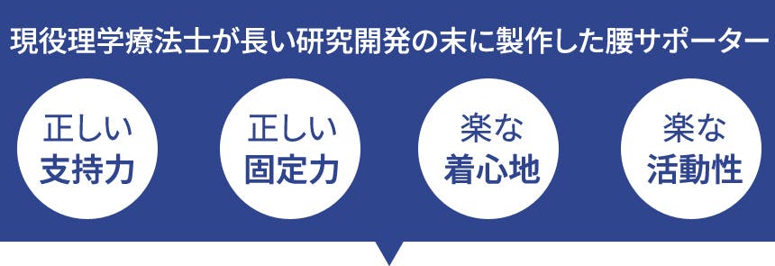 それで現役理学療法士である私がこれまでのノウハウと研究、設計で正しく腰の固定に役立つサポーターを1年の時間をかけて製作しました。