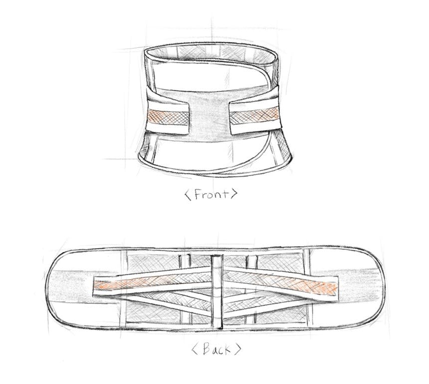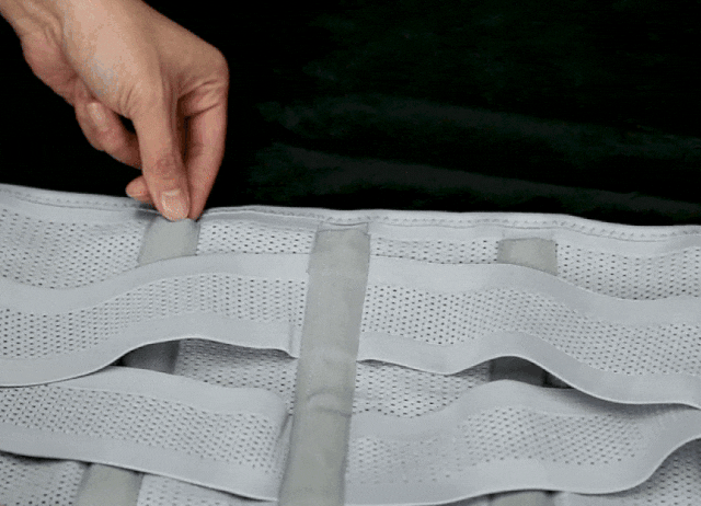 このような短所を知っているので、腰が支持台に過度に依存しないように3つの支持台をポイントにだけ適用し、支持台によって腰の筋肉に圧迫されないように両側の腰部分にはサポーターの内部に入れ、真ん中には脊椎ラインに無理がなくサポーターの外部にも入れるよう設計しました。