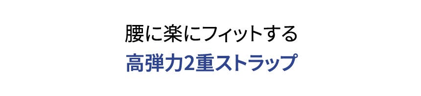 弾力性に優れた二重ストラップが腰をもちもちして楽に! 強力に! 固定してくれます。