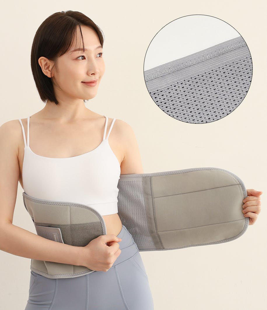 腰サポーターの背面にあるエアメッシュ素材が肌に優しく密着し、通気性に優れ、肌への刺激がないため、一年中快適で息苦しさなく着用できます。
