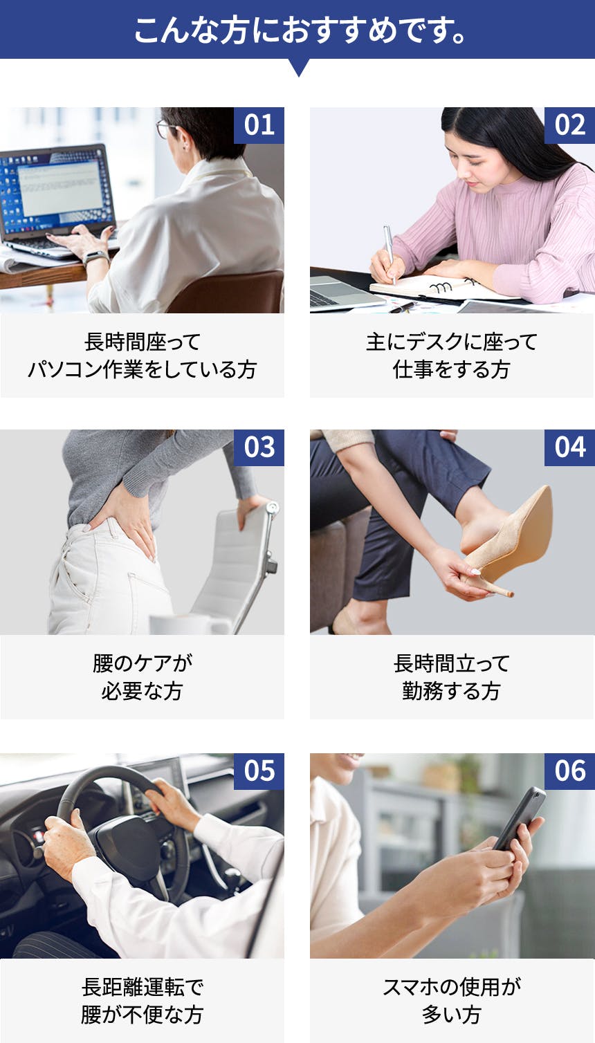 硬くも柔軟でもない最適な弾性感の支持台が腰の形に合わせて楽に支えるように設計しました。