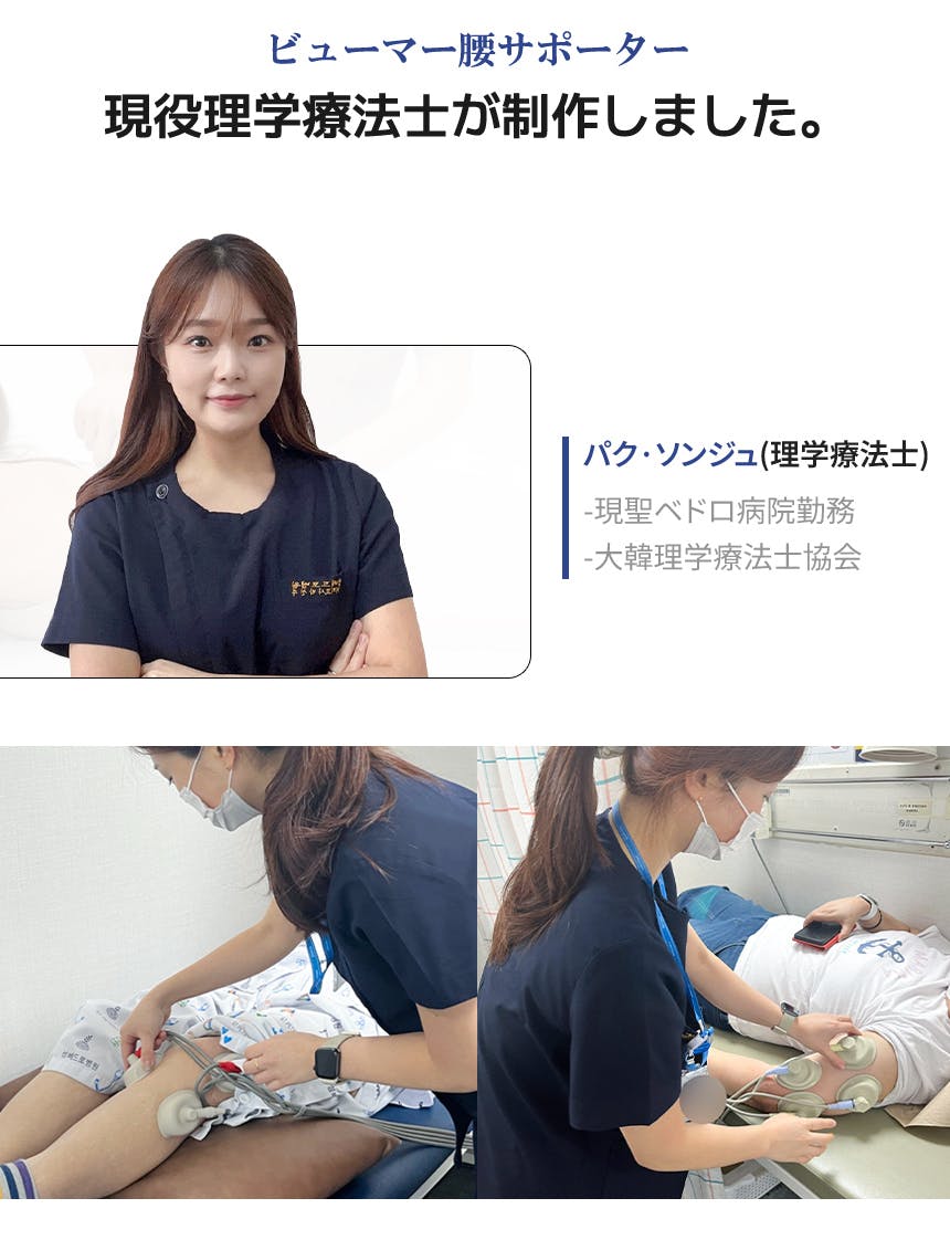 開発者は現職の理学療法士として勤め、多くの方々の腰の不便さを知っているので、すべての方々の腰に適切に圧迫と着用後に楽に日常生活ができるように製作したのがブメール腰サポーターです。