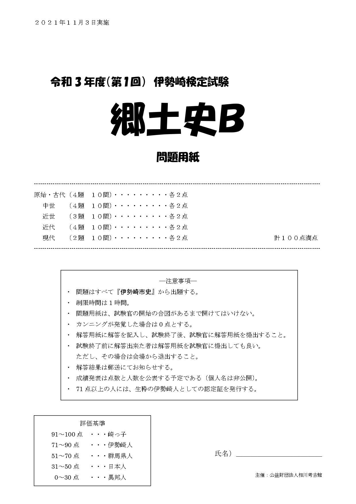 2021年、当初は「伊勢崎検定 郷土史B」という問題で作成しました。
