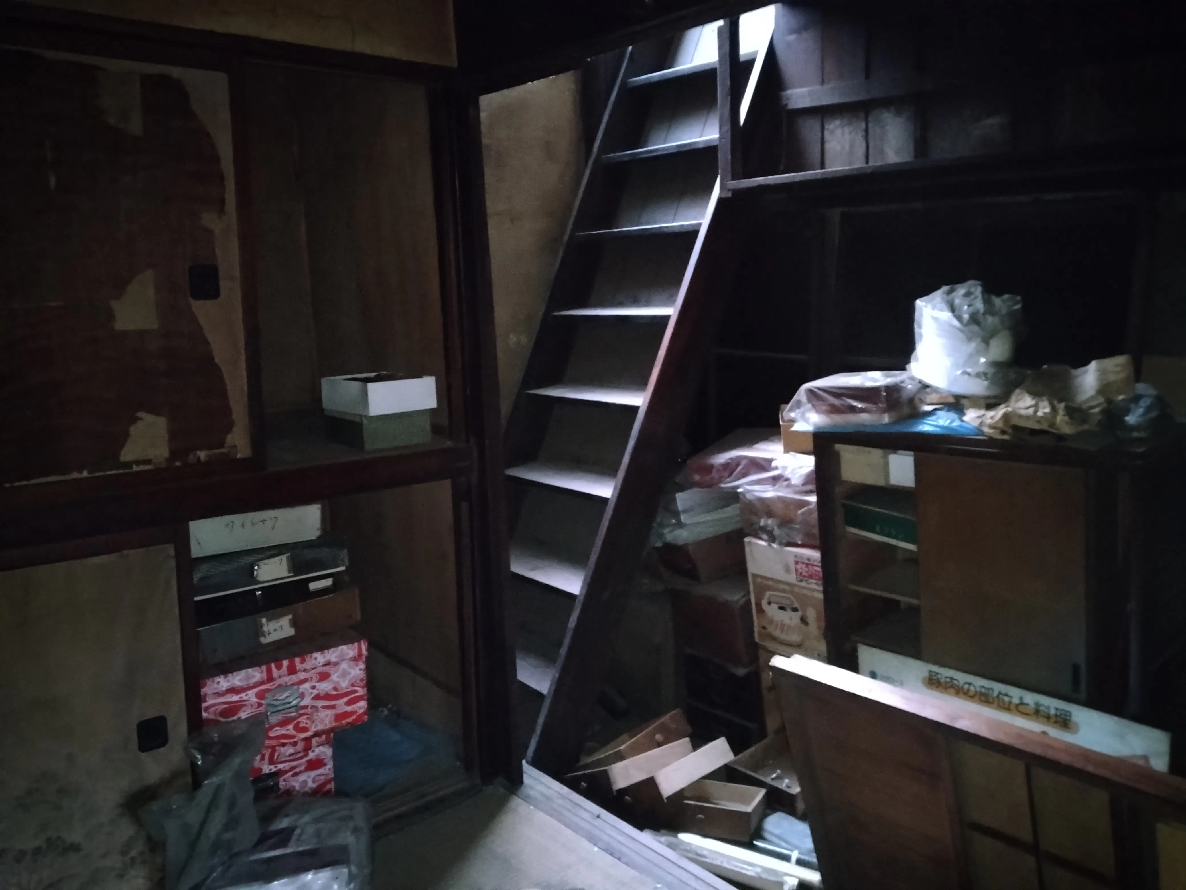 階段の降り口の正面は押し入れになっていて、どう考えても階段は上がりにくい。おそらく、押し入れは後から付けられたと現場を見た方は仰っていた。