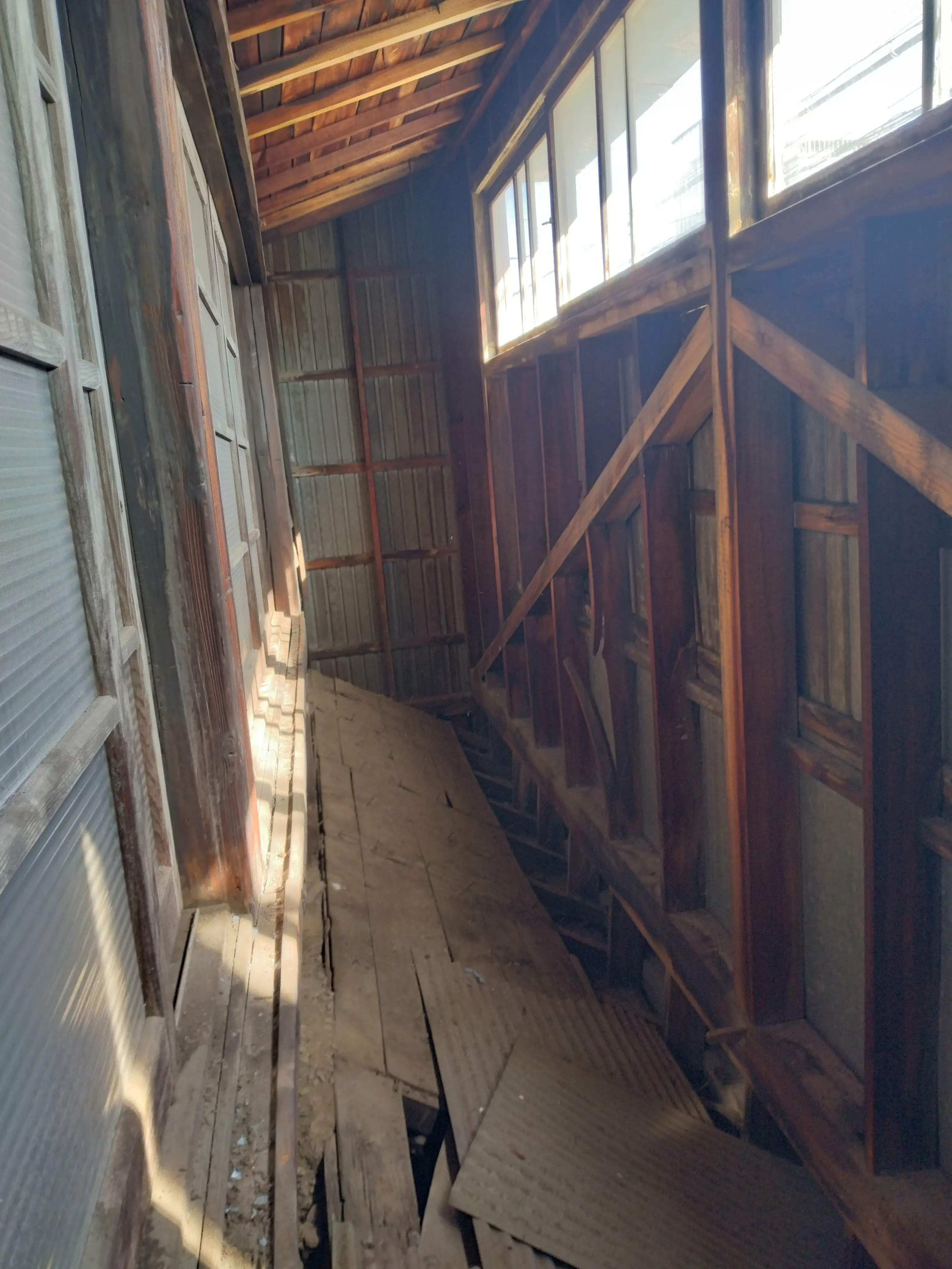 本来ですと、西町通りに面して、下屋が出ていたわけですが、道幅を広げたために下屋が切られてあります。
