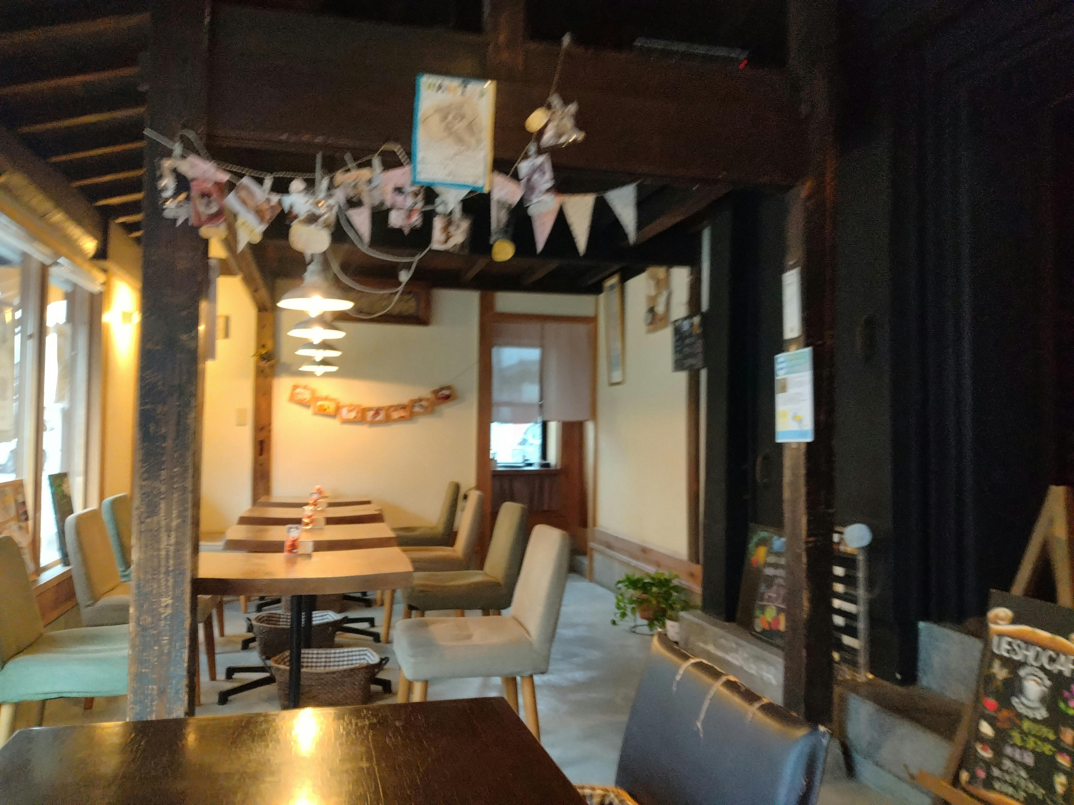 現在は、改装をして、土間の部分を喫茶室として開放しています。入口は行って一番始めに見える蔵に驚かされました。ちなみに、ここの店主にお願いしてチラシを置いて頂きました。