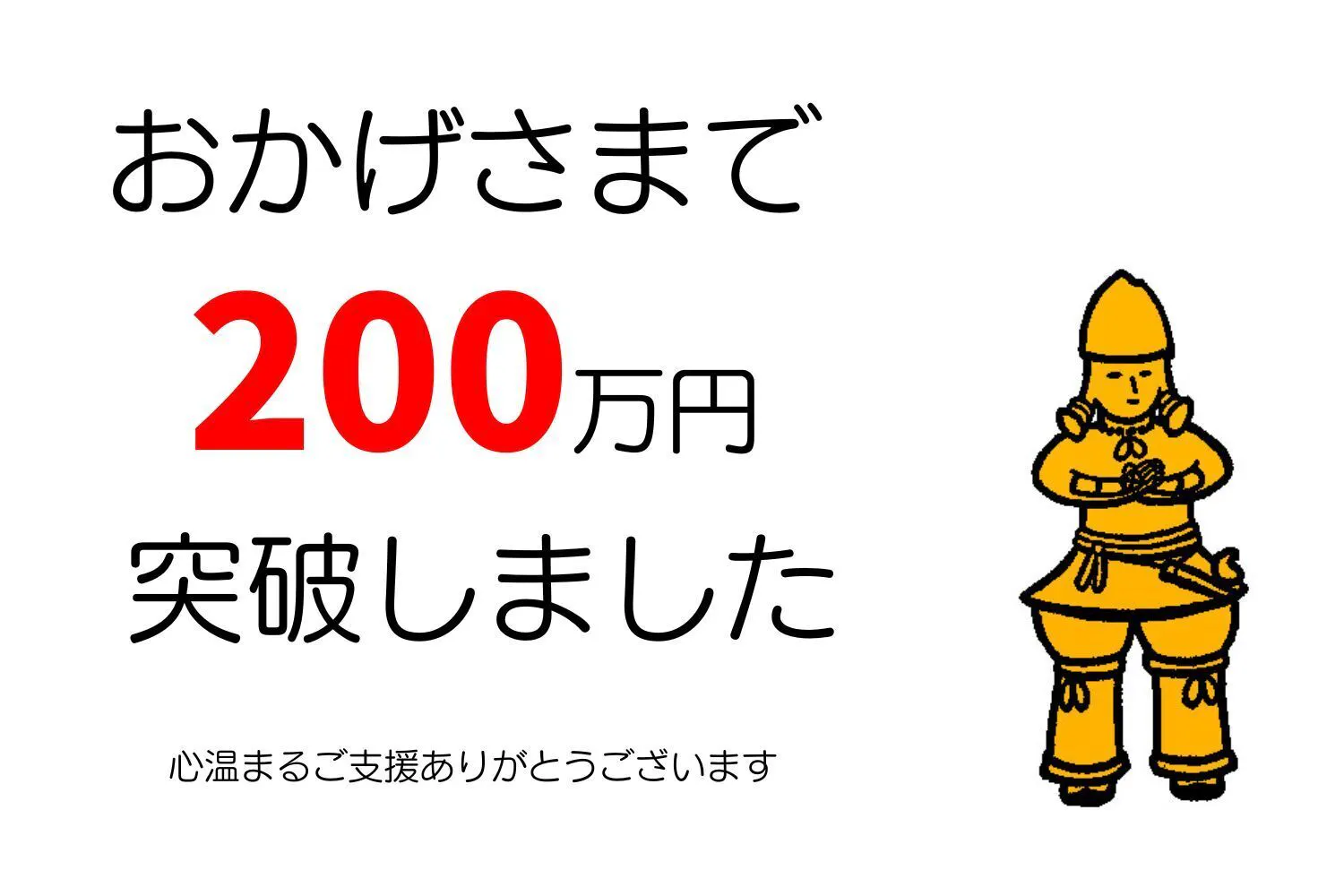 この方以前から皆様には、本当に、おひとりおひとりのお気持ちを頂き、ここまでの数字にたどり着いたと思っております。