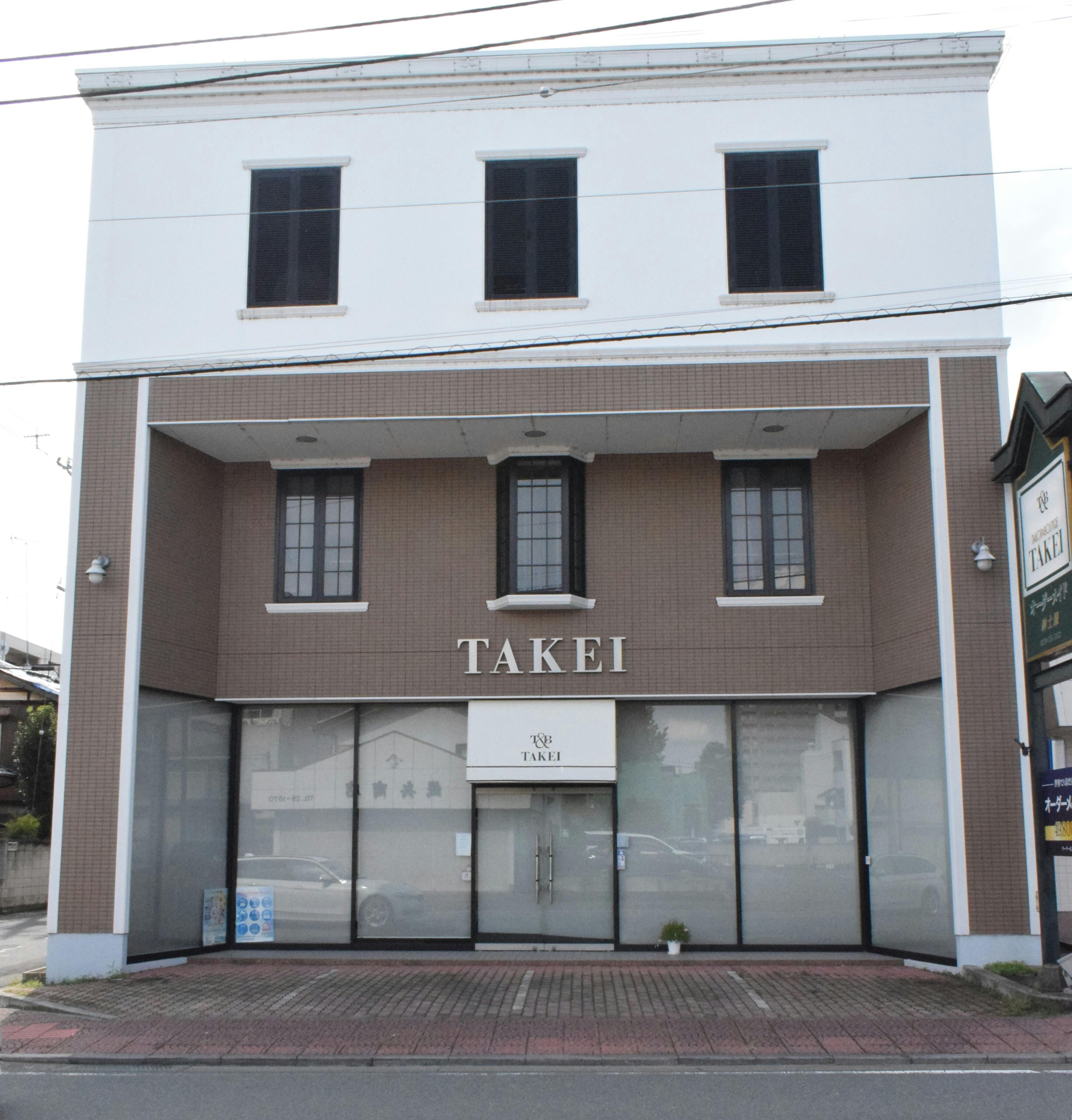 西町通りの北に紳士服のお店が構えられています。テーラー&ブティックタケイ昭和14年(1939)、武井民治が洋服の仕立て屋として開業したのが始まりです。昭和58年には、子息秀明氏が2代目を継承し、カジュアルな服の販売等を展開。現在は、原点に帰り、強みを生かした「オーダーメイド」に特化した事業を展開しています。伊勢崎で唯一の紳士服仕立て業として活躍しています。武井さんとお話をしていた時のこと、私が「なかなか太ってしまってスーツが着られなくなっちゃっいました」と話したところ「体形に合わしてスーツを作るのではなく、スーツに合わせた体形を維持するものです」と仰られてしまいました。仰られるだけあり、社長のスタイルは見習いたいものです。写真は、現在の建物で平成5年に造り変えました。それ以前の建物は、昭和44年に建てられた趣のある建物で、2階のショーウィンドウに飾られたスーツが、何とも言えないエモさを感じます。