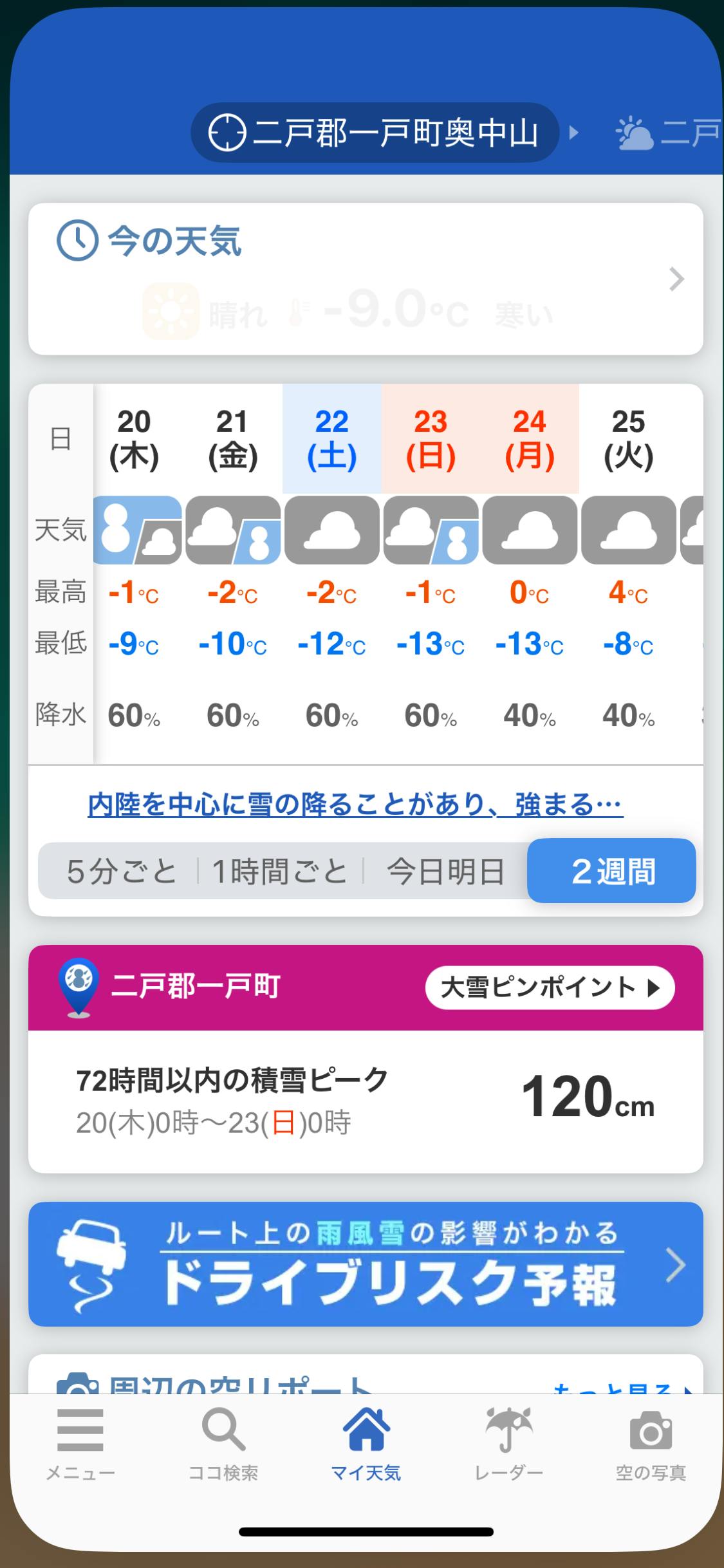 岩手県奥中山では今日も雪がチラホラ、今朝は-8℃