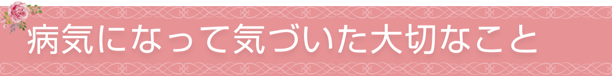 病気になったことで、自分の心に正直になり、本当に付き合っていきたい、大切にしたい人間関係を改めて知る機会になりました。