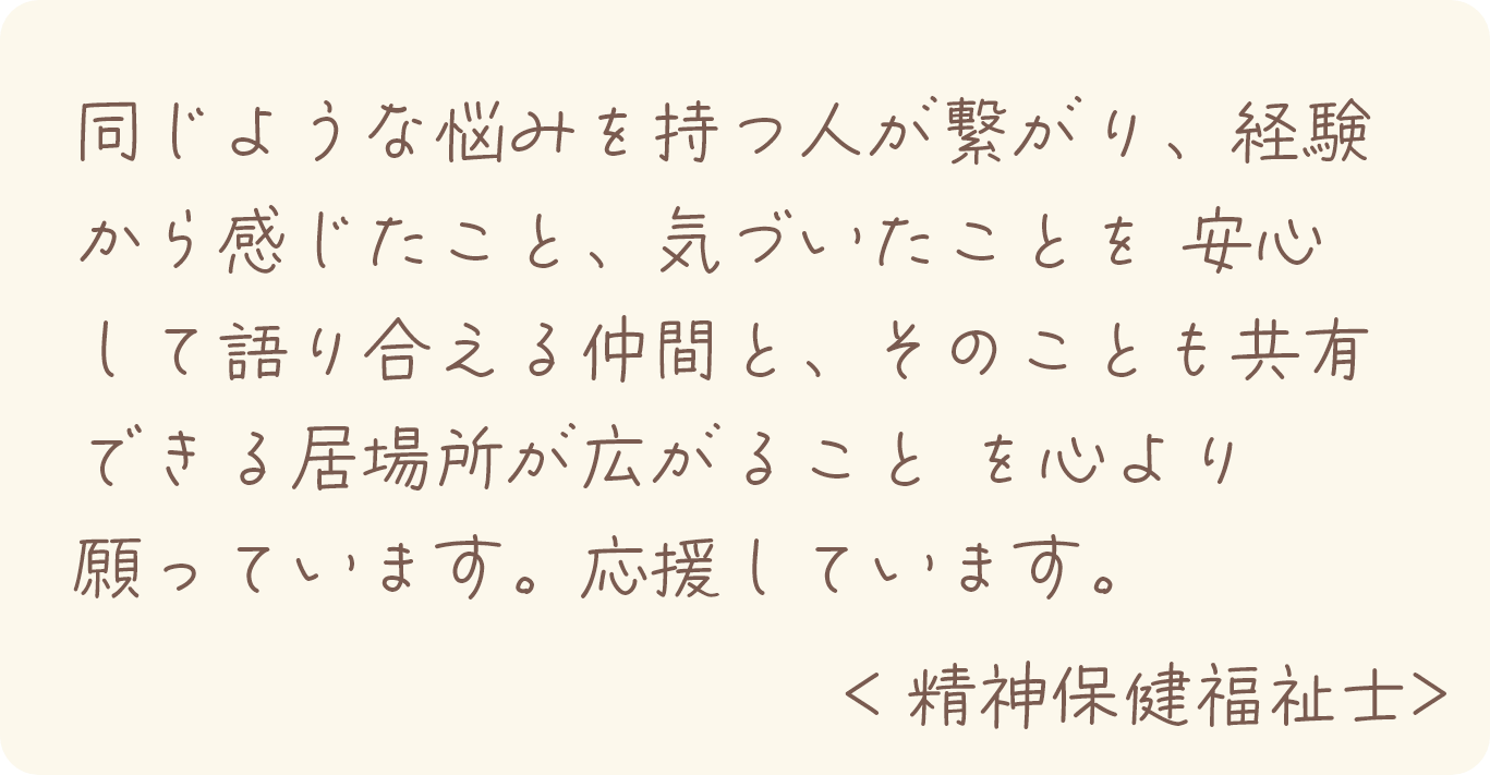 私は当事者同士がありのままで繋がり話せる場として当事者会を開催します。