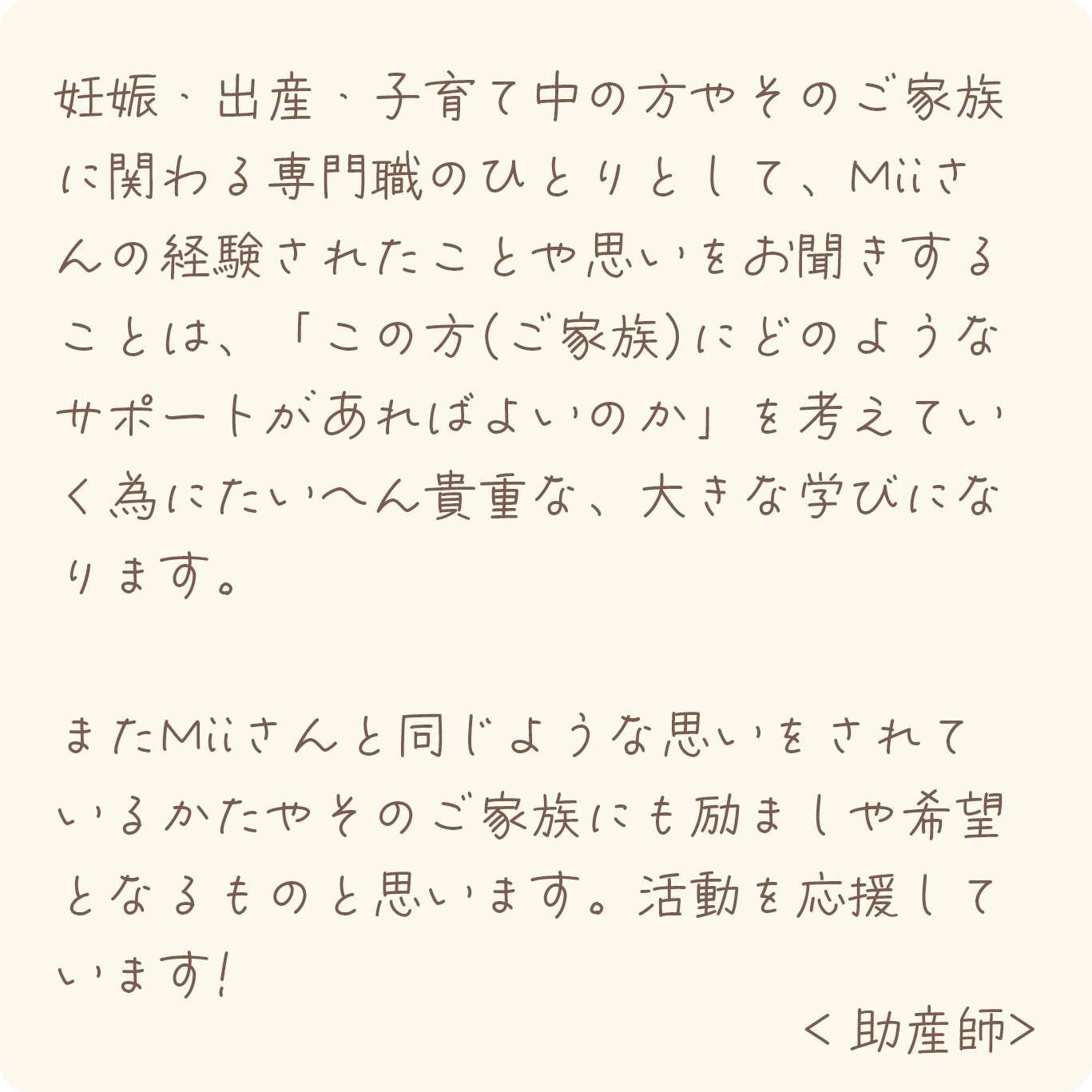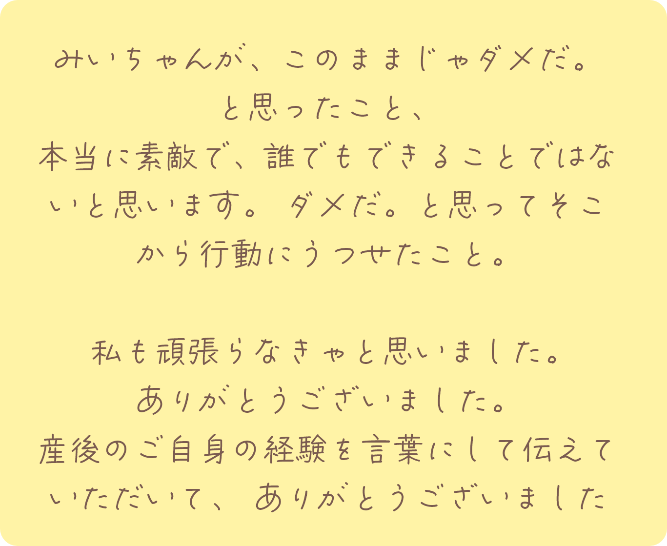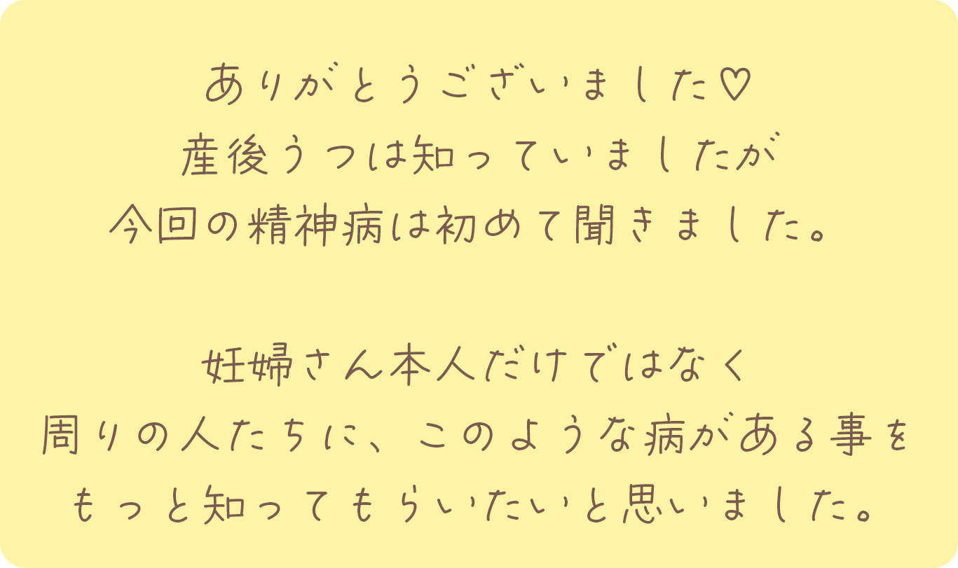 症状が全て改善したわけではありませんが、長男の妊娠中の産婦人科の先生や看護師さんとのやりとりが、温かく少し希望が持てました。