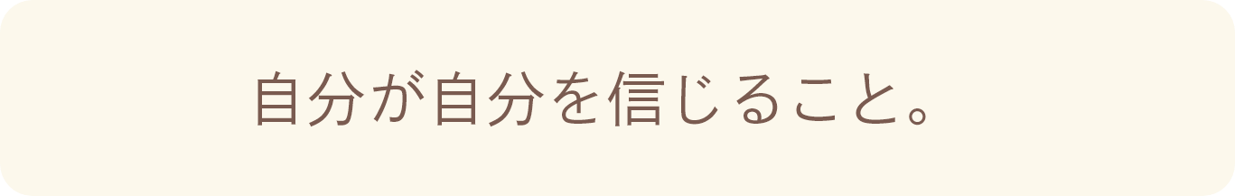 自分だけは自分を信じてあげる。生きているだけで、自分にありがとうと伝えてあげて欲しいと強く思います。