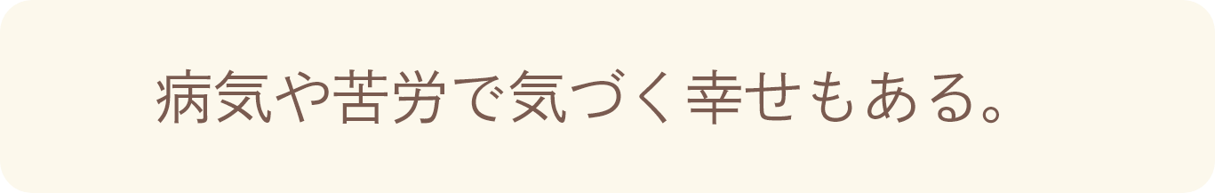 病気になってみて、人は生かされていることに気付き、生きているだけで意味があると思えました。