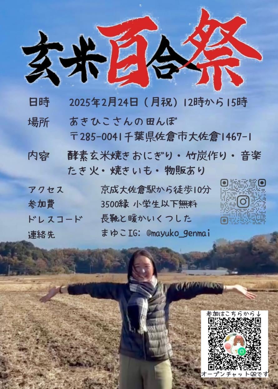 玄米百合祭🌾は、私が約3年間続けてきた「玄米会」の集大成として、2025年2月24日に千葉県佐倉市で開催するイベントです。