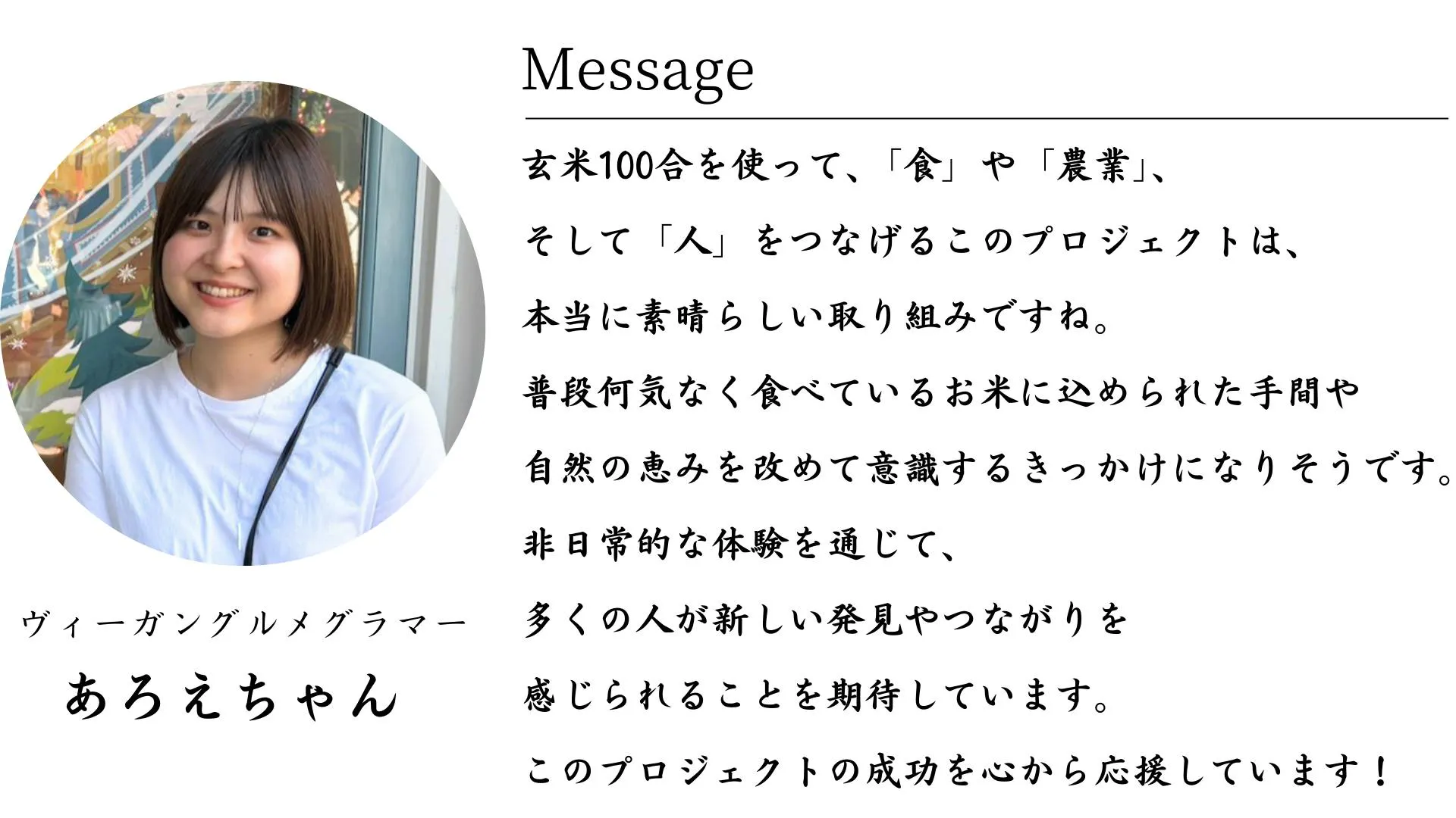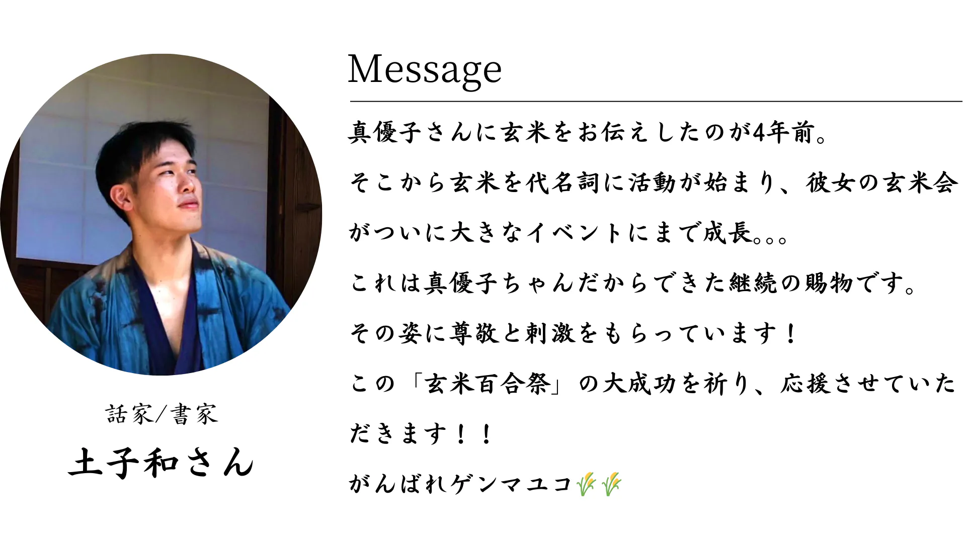 本プロジェクトを通して、玄米百合祭の詳細やイベントに対する想いをご覧いただき、ぜひ、本イベントにご参加いただけると嬉しいです♪