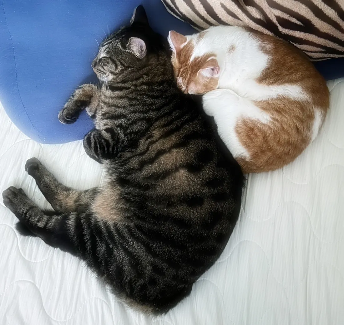 隣の保護猫(ちくわ:4才8ヶ月)よりも3才年齢が下のはずですが、家で一番大柄な猫にまで成長しました。
