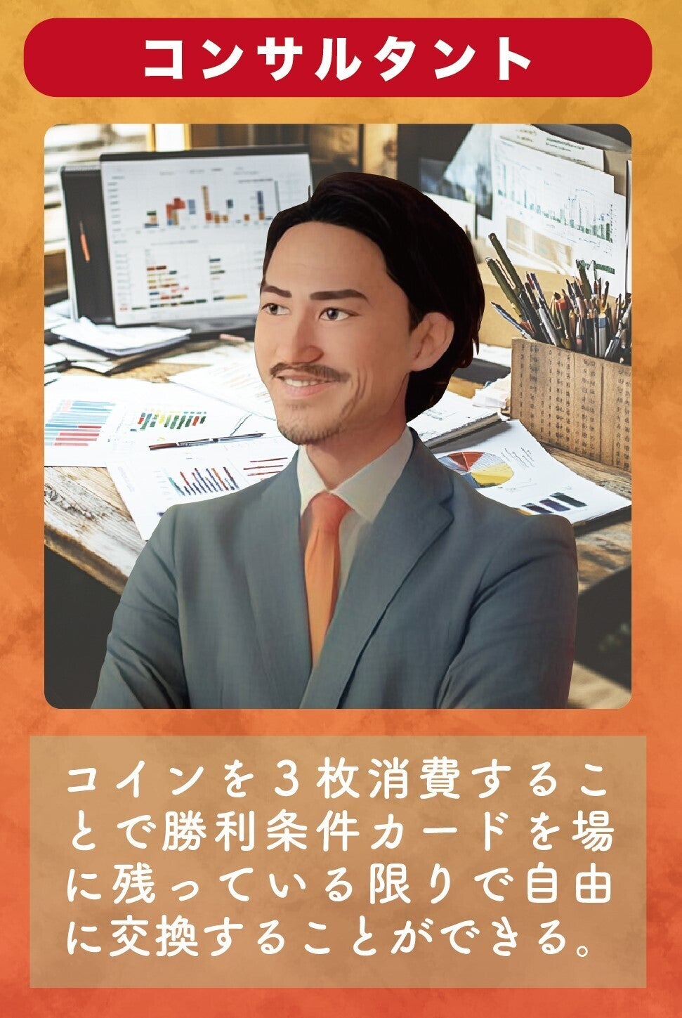 →スタートアップ企業には起業家以外に研究者や専門家といった仲間が欠かせません。自分の熱意についてきてくれる仲間、協力者を手に入れることも起業家に求められる能力かもしれません。本ゲームでも多くの専門家が登場します。