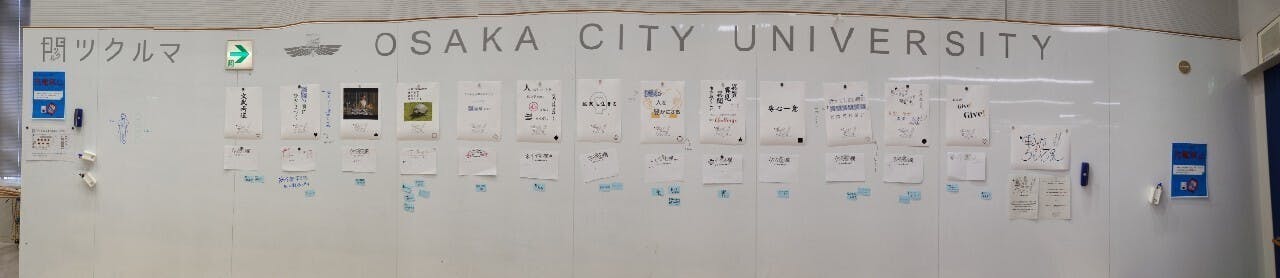 「重みがちゃうで展」第一弾では、大阪公立大学にて、大阪市立大学OBOGから集めた「オリジナル名言」を展示しました。