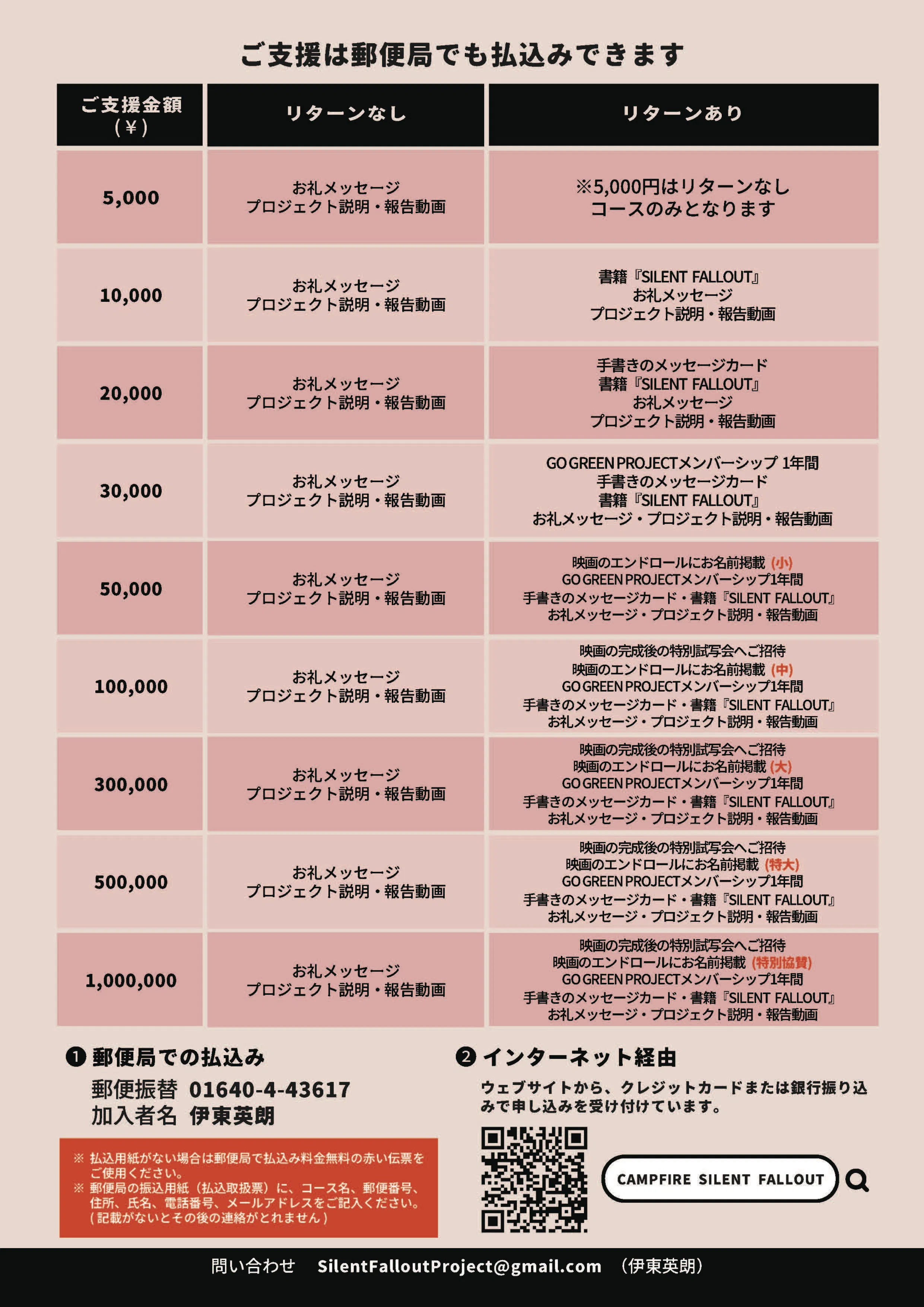 本プロジェクトはAll-in方式で実施します。目標金額に満たない場合も、計画を実行し、リターンをお届けします。