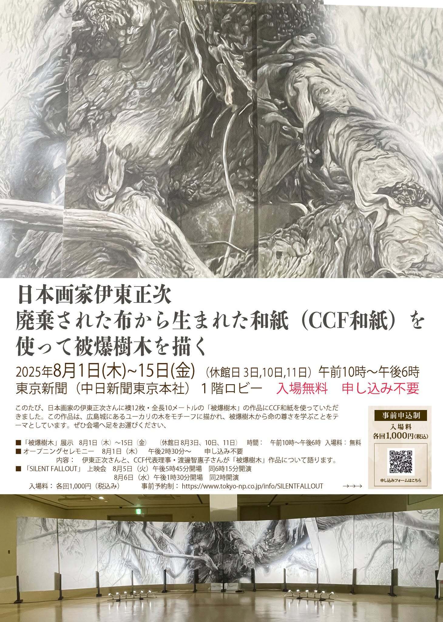 8月1日(木)から15日(金)まで東京新聞社1F ロビーで横11メートルに及ぶ襖絵「被爆樹木」が展示されます描いたのは、日本画家伊東正次(私伊東の弟です、笑)7月に広島で開催したGO GREEN PROJECTでお披露目した絵です是非、ご覧ください!