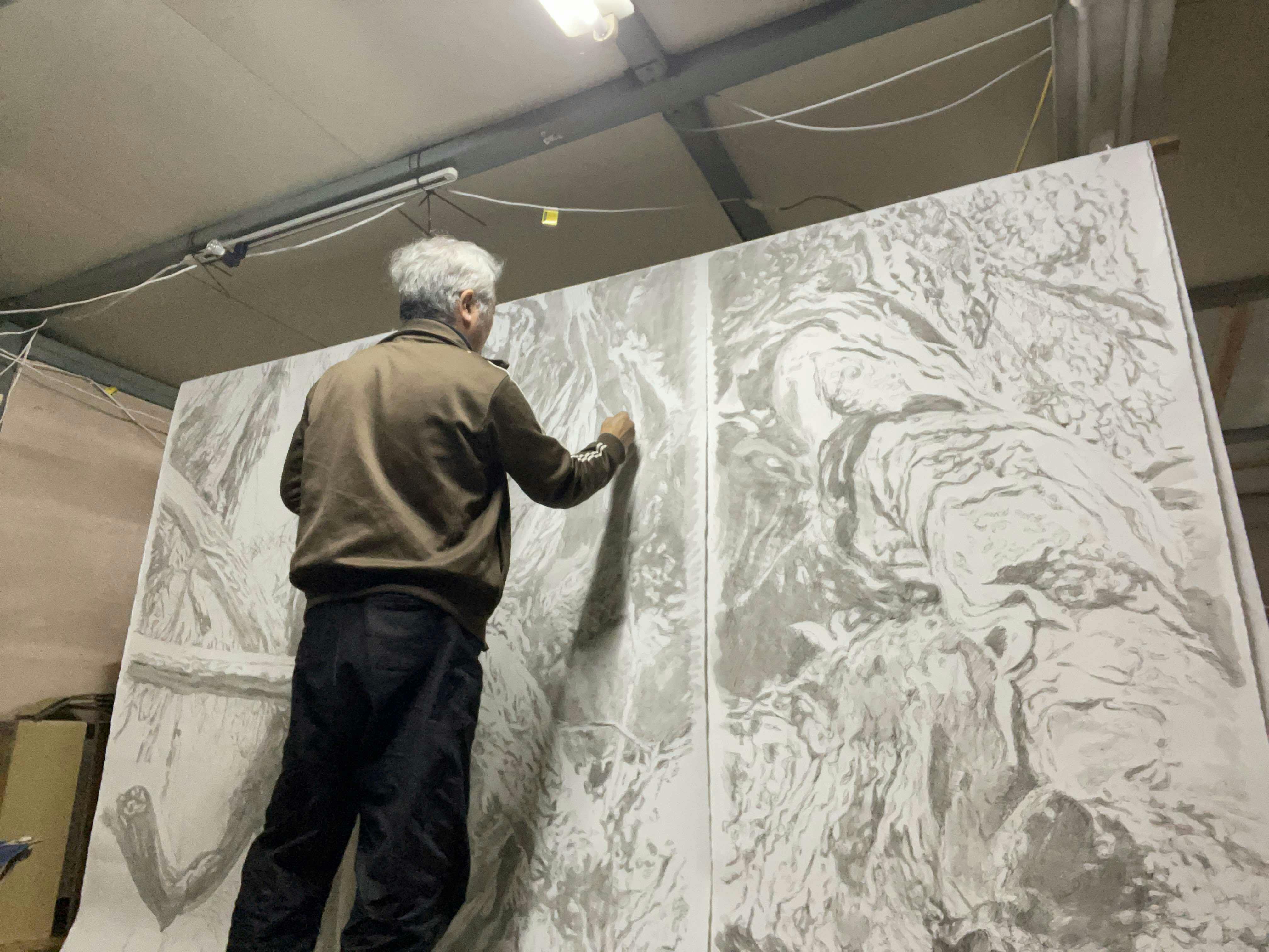 会場内には日本画家・伊東正次氏が描く〈襖絵12枚の被爆樹木〉が、会場を彩ります。被爆樹木のモチーフは広島城のユーカリの木。