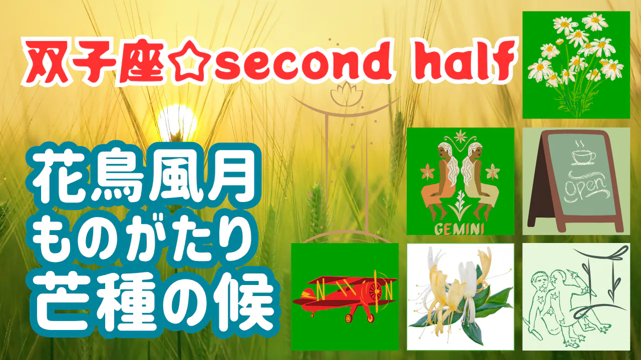 白木海月Youtubeチャンネルに【花鳥風月ものがたり】芒種の候☆双子座2 の動画をアップしました。四季折々の花鳥風月と星座のシンボルや特徴を紹介するシリーズ、今回は双子座となかよしの水星や、古代ギリシャ神話の12柱伸ヘルメス(ローマ神話ではマーキュリー)、古代エジプト神話ではトト神の象徴するものについて所感まじりに綴っています。 日本独特の暦である24節気72候は自然の変化や動植物の様子を短いことばで表現して、日本の季節の繊細なうつろいを教えてくれます。 今年は6月5日から芒種の候に入ります。 星座では双子座後半の季節。星と季節のものがたりを綴る【花鳥風月ものがたり】、たのしく観てくださるとうれしいです。
