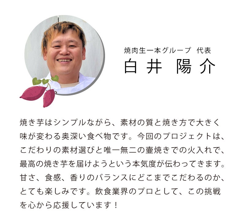 この想いを共有していただき、美味しい壷焼き芋を召し上がりながら、一緒に未来を築いていく喜びを味わってほしいと思います。