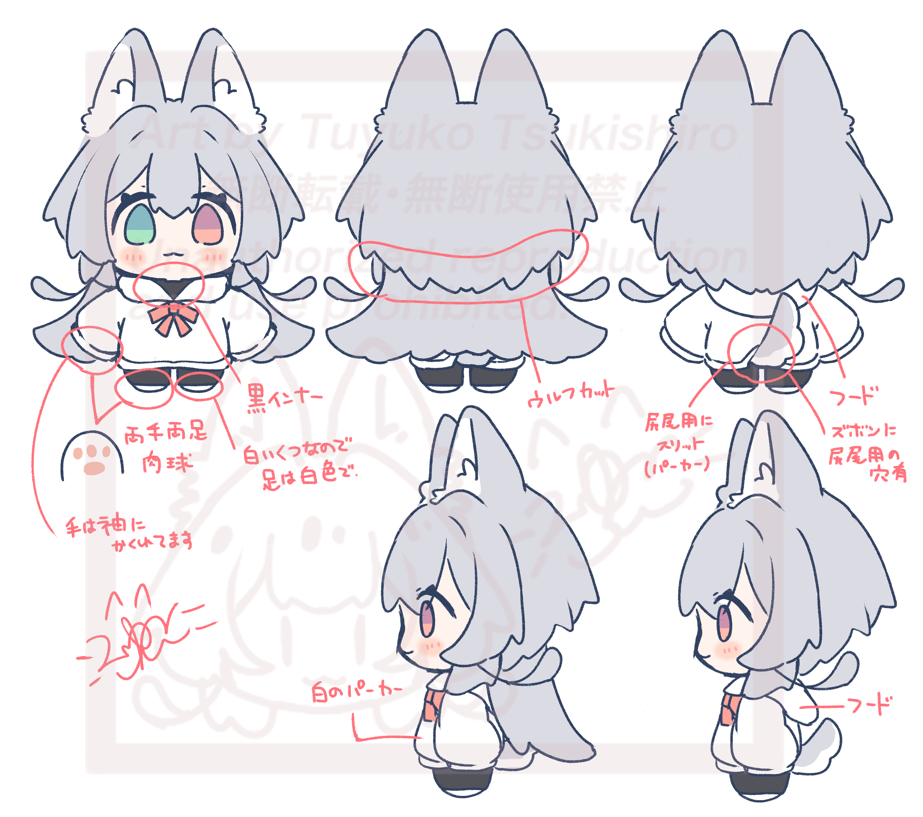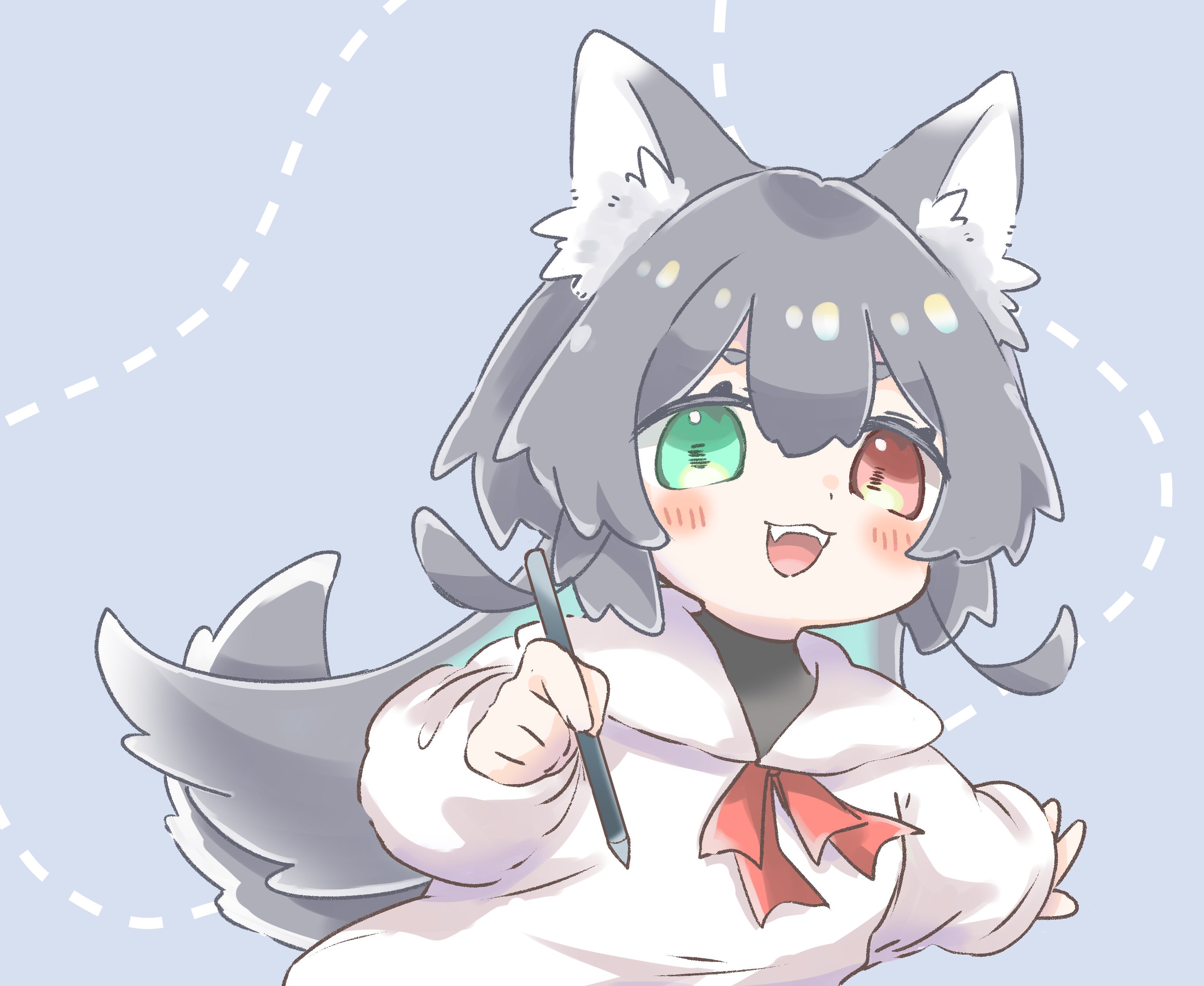 大きな狼の耳にロングのウルフカットヘアー、オーバーサイズパーカーを着てまったり日常を過ごしている狼っ子です。